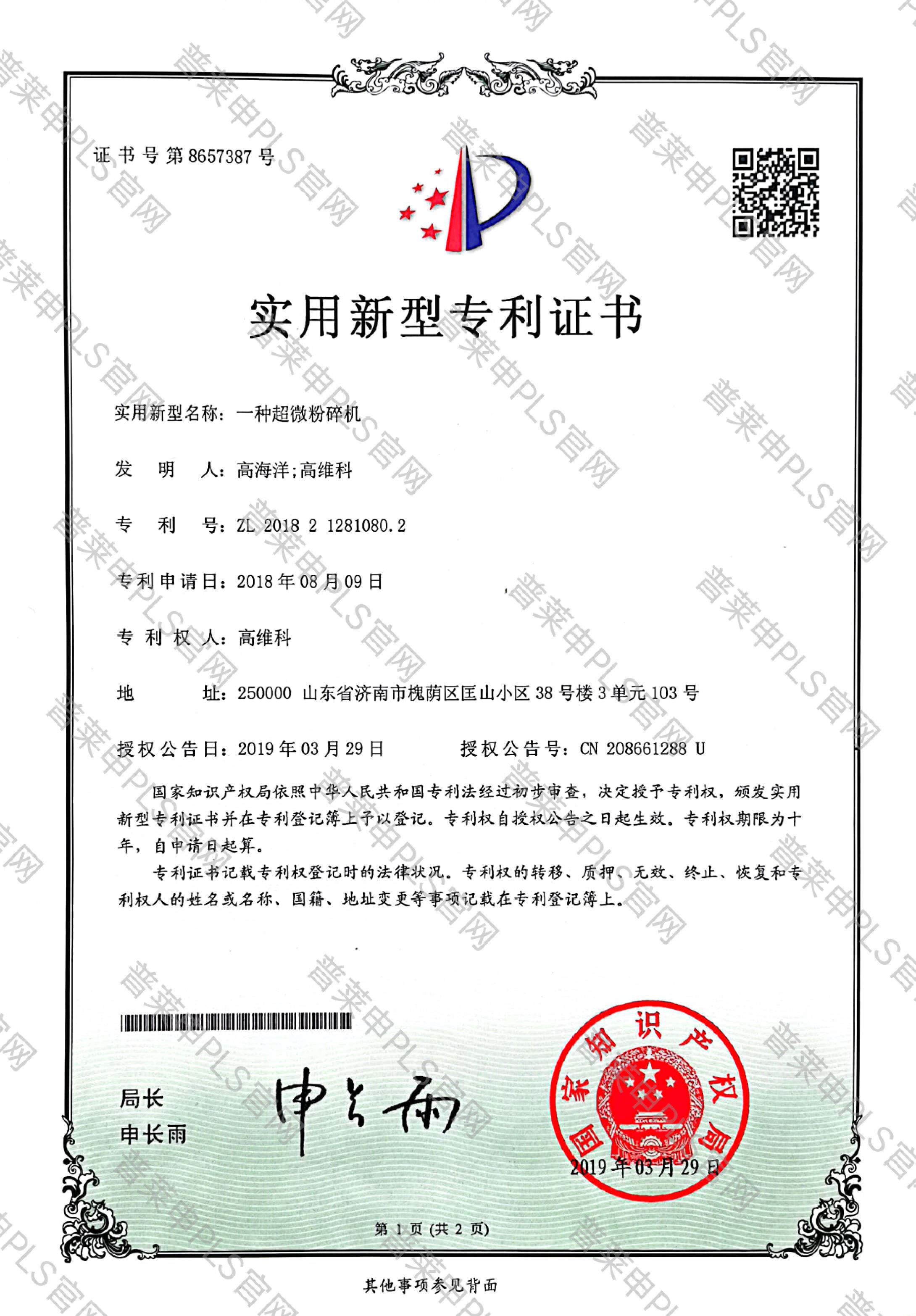(2019) 一种封闭式超微粉碎装置实用新型专利