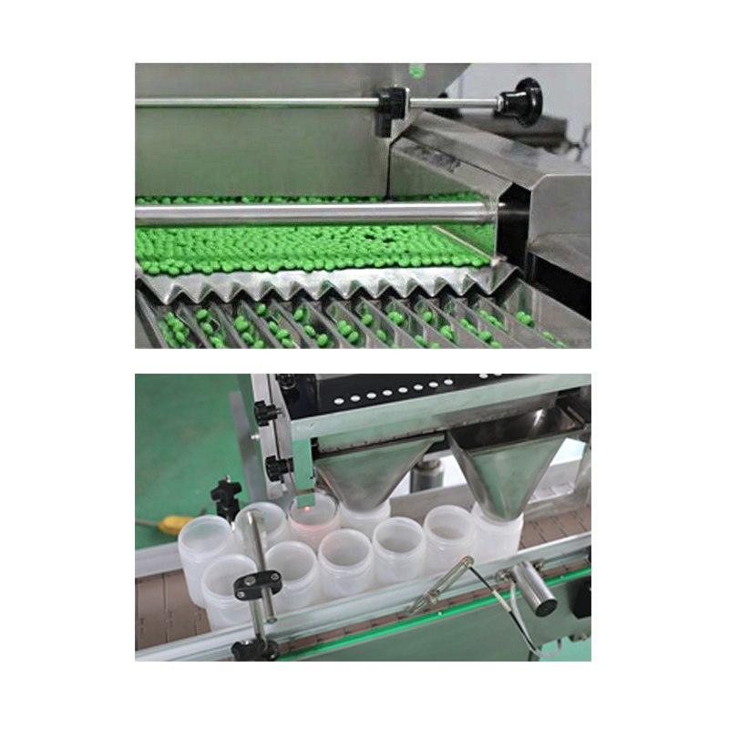 采用振动式多通道下料、计算机控制,动态扫描计数、自动输瓶、系统自检、故障指示报警、自动停机等先进技术,按GMP标准设计,是集光、电、机一体化的高科技药品和食品计数灌装设备。