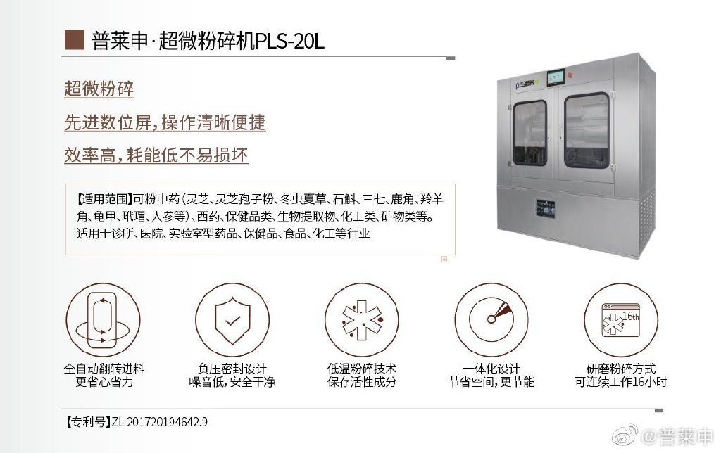 1、低温 普莱申采用低温冷冻的粉碎方式,使得中药粉碎过成减少粉尘