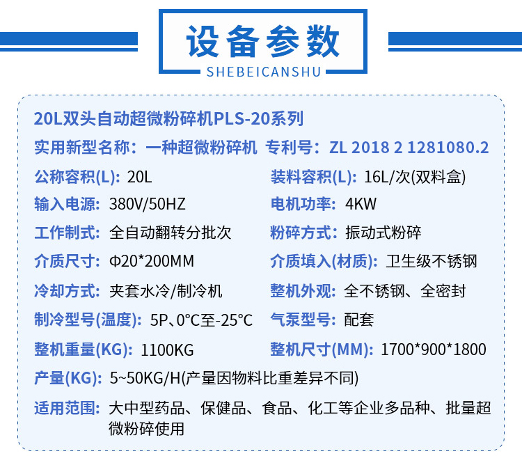 磨筒的夹套通入冷却水。通过调节冷却水的温度和流量可控制粉碎温度。低温粉碎,制冷温度可达-35℃(高档低温配置)。